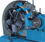 Этот кожух новой конструкции разработан специально для усиления потока охлаждающего воздуха через ребра цилиндров, головок цилиндров и вторичных охладителей. Он же обеспечивает полную защиту ремней. Для замены ремня кожух легко снимается. Температура узлов компрессора ниже на 25 % при использовании на 50 % меньше охлаждающего воздуха, чем в обычных системах, более длительный срок службы компрессора, высокий коэффициент готовности компрессора