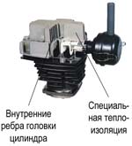 Теплоизоляция в камере всасывания головки цилиндров гарантирует, что сжимается только воздух с температурой окружающей среды. Улучшенная конструкция ребер теплопередачи на цилиндрах и головках цилиндров обеспечивает отвод 2/3 тепла, генерируемого в процессе сжатия. Температура сжатого воздуха всего на 6-12°С выше входной. Повышение на 10 % объемной производительности компрессора, снижение затрат на электроэнергию на величину до 16 % по сравнению с более ранними конструкциями, более высокая надежность благодаря сниженной температуре узлов, остаточное содержание масла в сжатом воздухе уменьшается вдвое