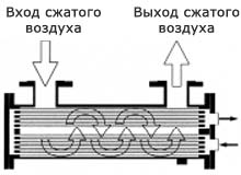 - Высокая эффективность охлаждения благодаря ребристости труб со стороны сжатого воздуха и гладкости труб со стороны воды