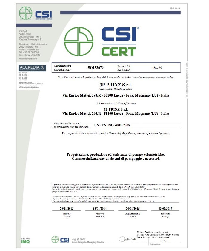 Целью 3P Prinz является обеспечение заказчика изделием, требующим минимального обслуживания и идеально соответствующим каждому конкретному применению, а также осуществление полной поддержки заказчика в течение всего жизненного цикла насоса.