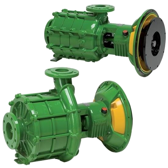 Одно- и многоступенчатые центробежные насосы с повышающей передачей с приводом от карданного вала или вала отбора мощности трактора. Осевое всасывание и тангенциальное нагнетание.