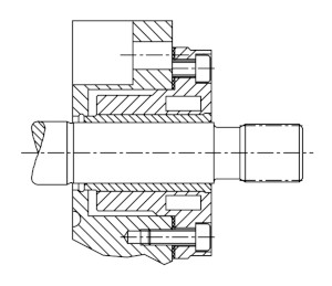 - (3) - легко регулируемый с помощью шайб осевой зазор.